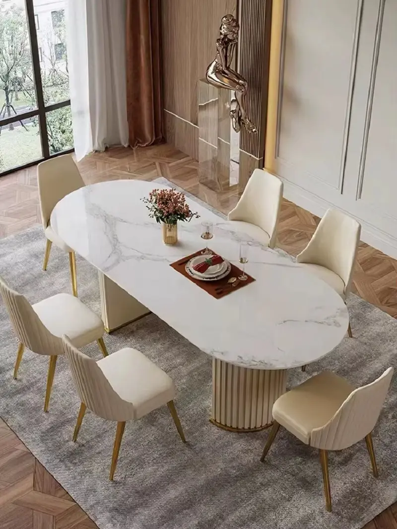 تُعد طاولة طعام رخامية خيارًا مثاليًا لكل من يبحث عن تصميم يجمع بين العملية والشكل الأنيق داخل المنزل. هذه الطاولة تنتمي إلى فئة طاولات طعام التي تناسب الاستخدام اليومي، وتوفر سطحًا متينًا يسهل الحفاظ عليه بنظافة دائمة، مما يجعلها مناسبة للعائلات.