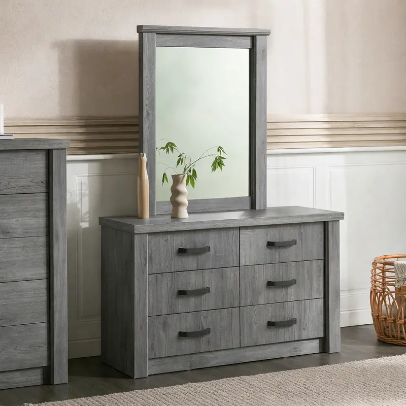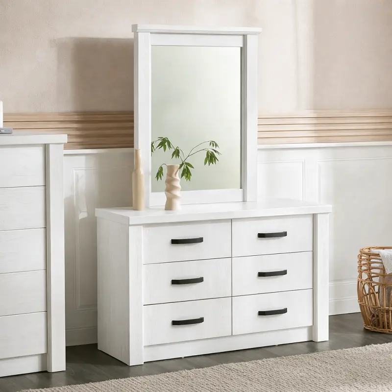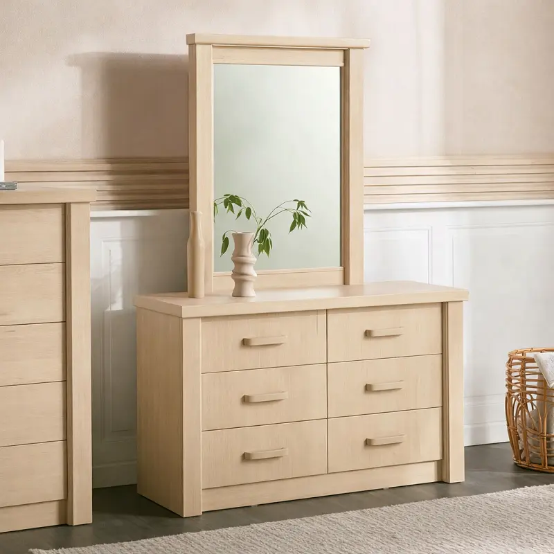 تألقي بأثاث منزلكِ مع تسريحة غرفة نوم بـ6 أدراج من ميدلي، التي تجمع بين الأناقة والوظائف المتعددة. تتميز هذه الطاولة بتصميمها المستطيل الأنيق والذي يتناغم مع أي ديكور داخلي. إنها إضافة مثالية لأي غرفة نوم، مما يجعلها مركزًا للجمال والتنظيم.