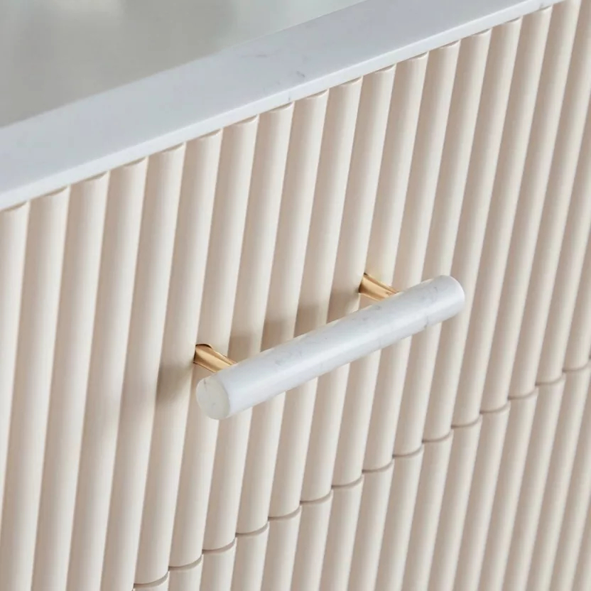 تتميز تسريحة غرفة النوم ب6 أدراج بتصميمها الفريد وتشطيبها المطلي، مما يضفي عليها لمسة من التميز. كما أنها مصنوعة منخشب هندسي خشب زان روماني عالي الجودة لضمان استخدامها لفترة طويلة.