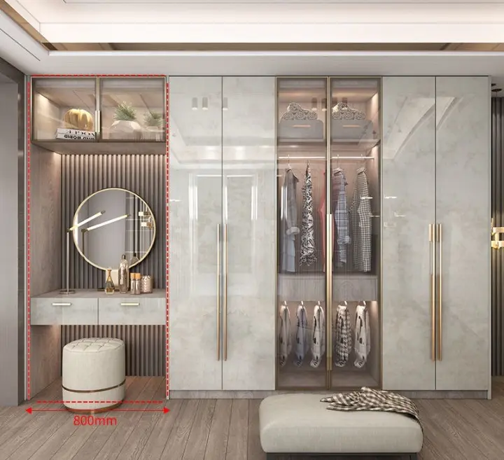 اضف لمسة فاخرة إلى غرفة نومك مع هذه الخزانة الملابس الفاخرة من متجر أركان القصر للأثاث. تم تصميم هذه الخزانة بعناية فائقة لتلبي احتياجات الذوق الرفيع وتعزز أناقة المكان. ستضفي هذه الخزانة لمسة من الأناقة والترف في أي غرفة نوم.