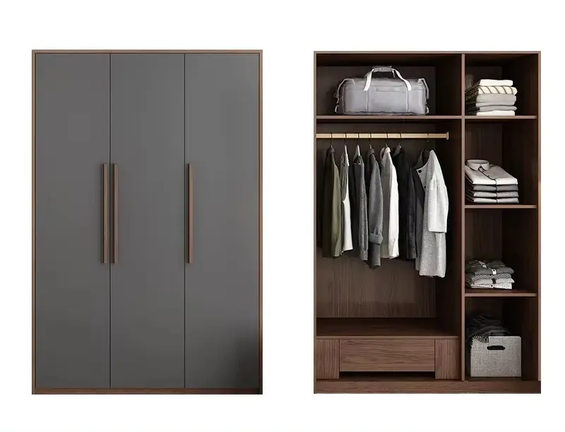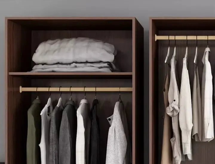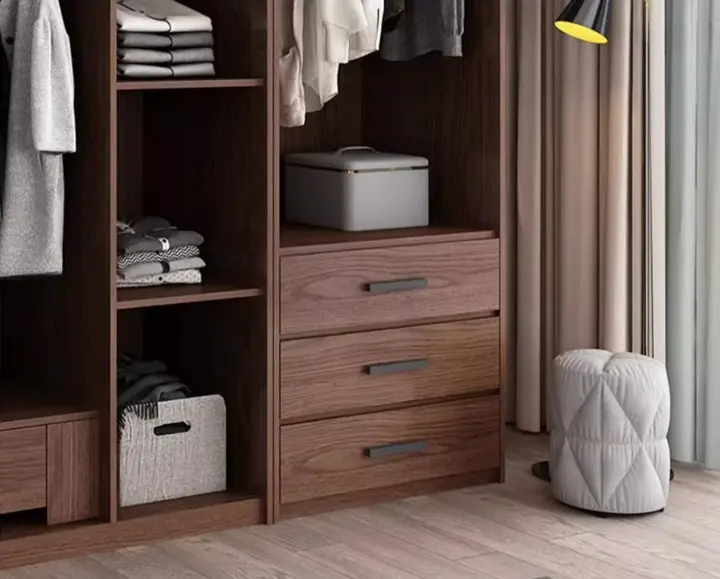 الميزة الأهم في هذه الخزانة الخشبية أنها لا تعتمد على المساحة فقط، بل على طريقة توزيعها من الداخل. الأرفف تساعد في ترتيب الملابس اليومية والمفروشات بصورة منظمة، بينما تمنح الأدراج مساحة إضافية لحفظ القطع الصغيرة أو الأغراض التي تحتاج إلى بقاء قريب وسهل الوصول. هذا النوع من التقسيم الداخلي يجعل دولاب الملابس أكثر فاعلية في الاستخدام اليومي، ويقلل من الفوضى داخل الغرفة، خصوصًا في البيوت التي تحتاج إلى حلول تخزين واضحة وعملية.