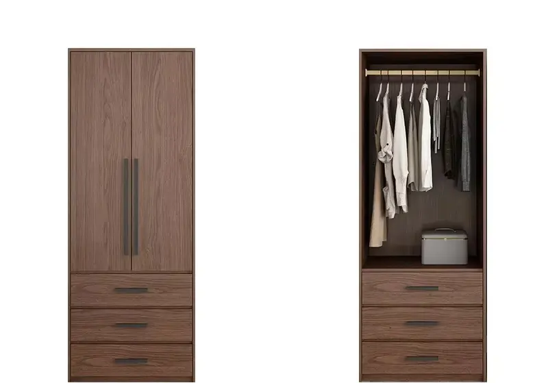 صُنعت الخزانة من خشب مع خشب زان متين عالي الجودة، وهو ما يمنحها ثباتًا جيدًا وتحملًا مناسبًا للاستخدام المتكرر. هذا الاختيار في الخامات يجعلها ملائمة للأشخاص الذين يفضّلون قطع الأثاث العملية التي تجمع بين الشكل المرتب والاعتماد اليومي. كما أن التشطيب الخشبي الداكن يمنحها حضورًا أنيقًا ينسجم بسهولة مع مساحات النوم المختلفة دون مبالغة في المظهر.