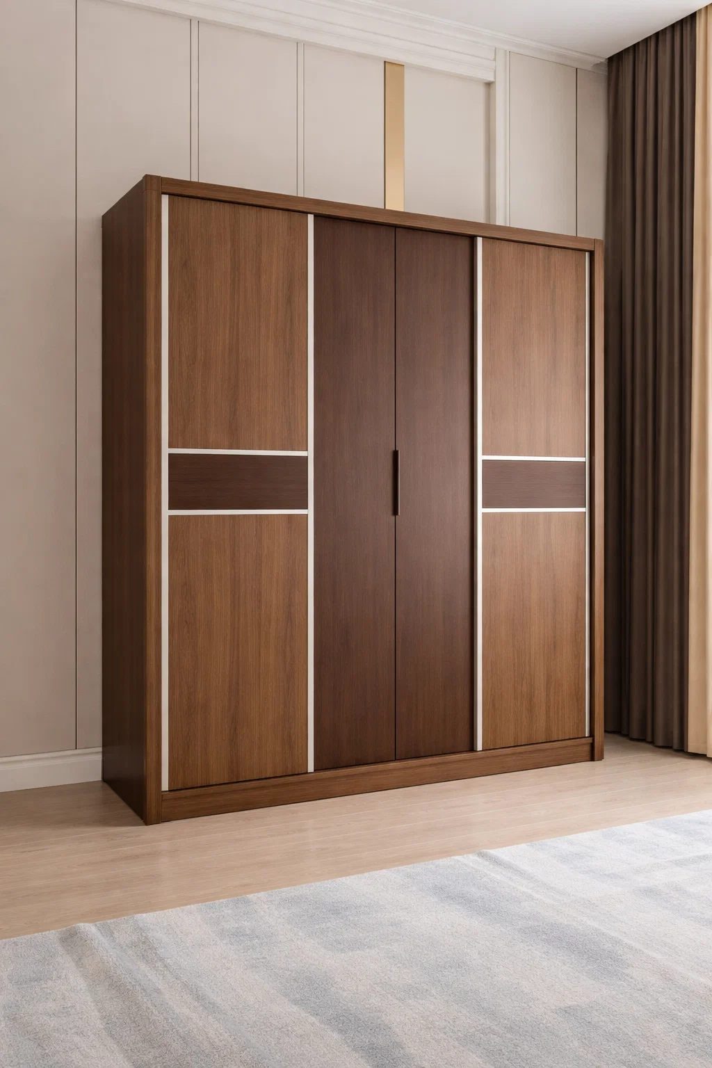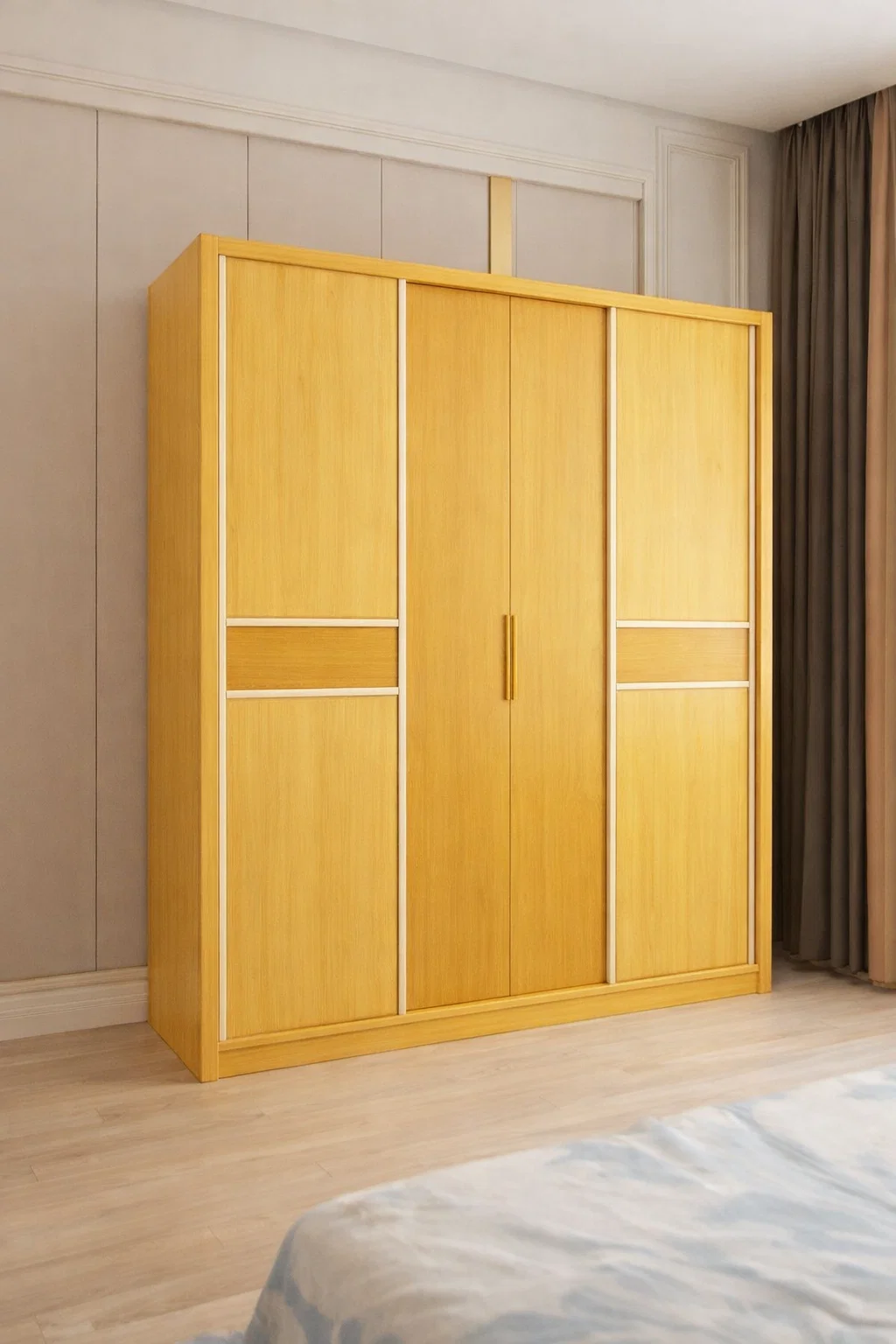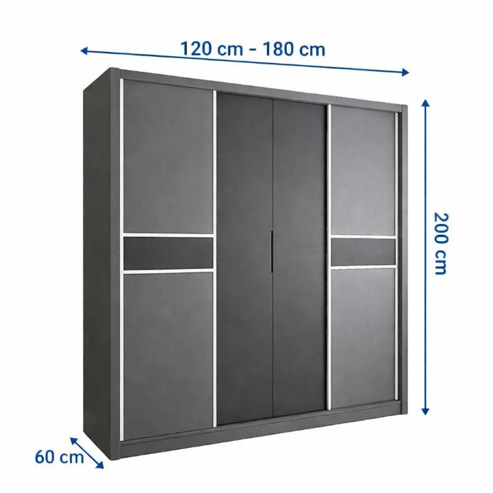 إطار الأبواب مصنوع من مادة معدنية قوية تعزز من متانة التصميم وثباته، مع تشطيب أنيق ينسجم مع الطابع العصري لغرفة النوم.