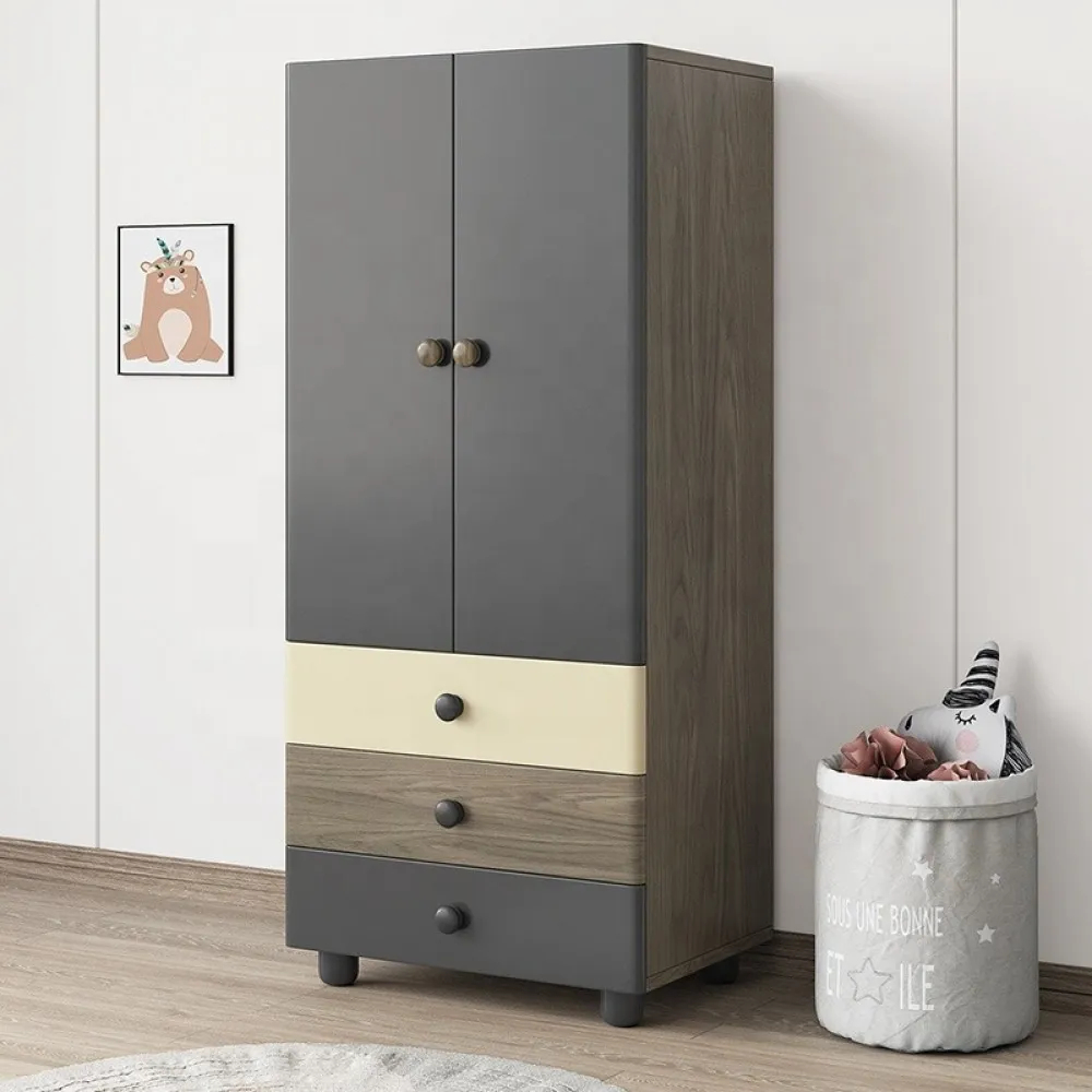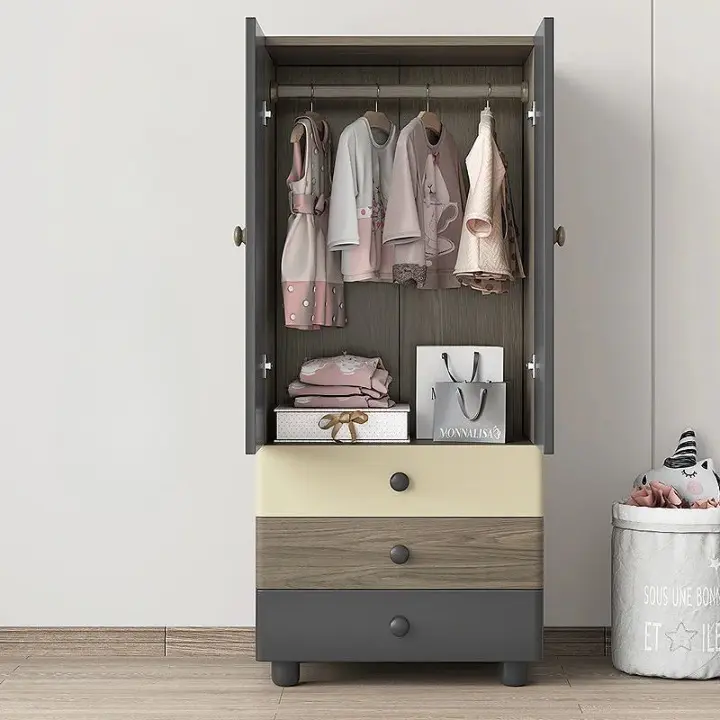 يعتمد تصميم الخزانة على بابين يسهل فتحهما وإغلاقهما، ما يجعل الوصول إلى الملابس سريعًا ومريحًا للأطفال أو للوالدين أثناء ترتيب الملابس اليومية. كما أن التصميم العملي يساعد على استغلال المساحة داخل الغرفة بشكل أفضل، خصوصًا في غرف نوم اطفال رخيصة أو المساحات المتوسطة التي تحتاج إلى حلول تخزين ذكية.