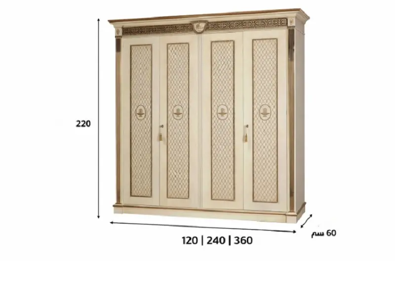 تعتبر خزانة الملابس التي تأتي بتصميم ملكي كلاسيكي خيارًا رائعًا لأولئك الذين يقدرون الفخامة والأناقة. تمتاز هذه الخزانة بلمسة فنية تعكس الأناقة والأصالة.