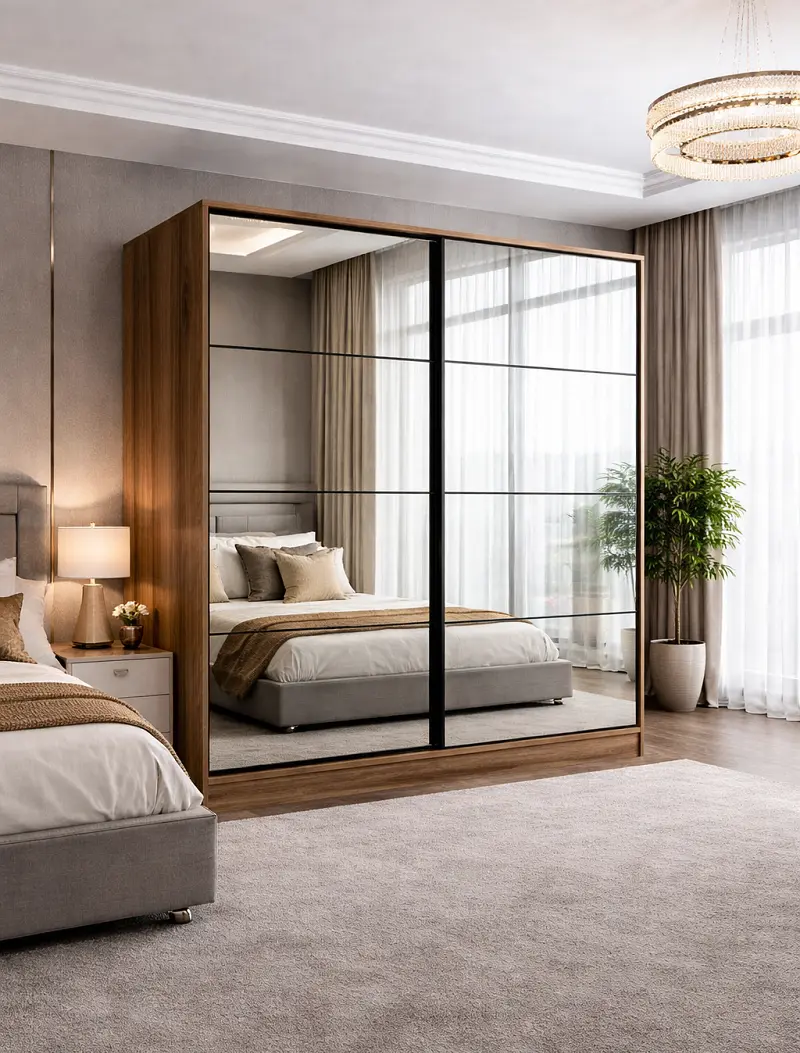 هذه الخزانة خيار مناسب لكل من يبحث عن قطعة عملية ضمن اثاث غرف نوم تجمع بين سعة التخزين وسهولة الاستخدام اليومي. تصميم الأبواب المنزلقة يجعلها مناسبة للاستعمال اليومي داخل غرف النوم دون الحاجة إلى مساحة إضافية أمام الخزانة عند الفتح، وهذا يمنح مرونة أفضل في ترتيب الغرفة، خصوصًا في المساحات التي تحتاج إلى تنظيم ذكي وواضح.