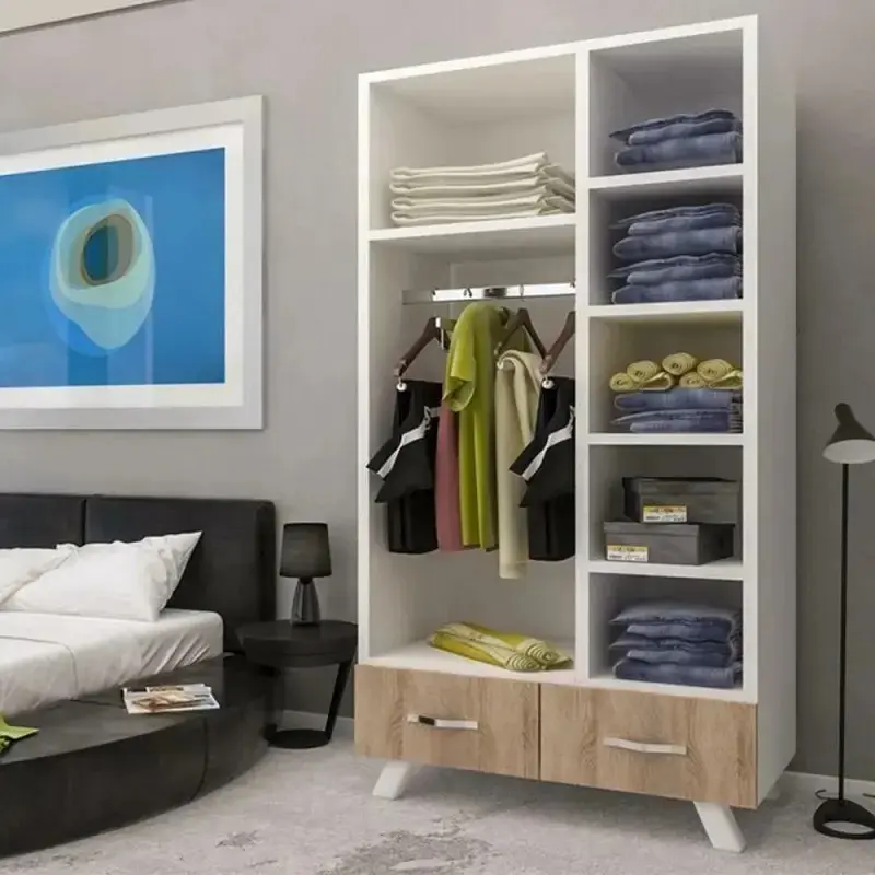 وجود الأرفف يمنح مساحة جيدة لترتيب الملابس المطوية والمفروشات الخفيفة والحقائب الصغيرة، بينما تساعد الأدراج في حفظ القطع التي تحتاج إلى ترتيب منفصل مثل الإكسسوارات أو الملابس الداخلية أو المستلزمات الشخصية. أما علاقة الملابس فهي مناسبة للملابس التي تحتاج إلى تعليق حتى تبقى مرتبة وجاهزة للاستخدام.