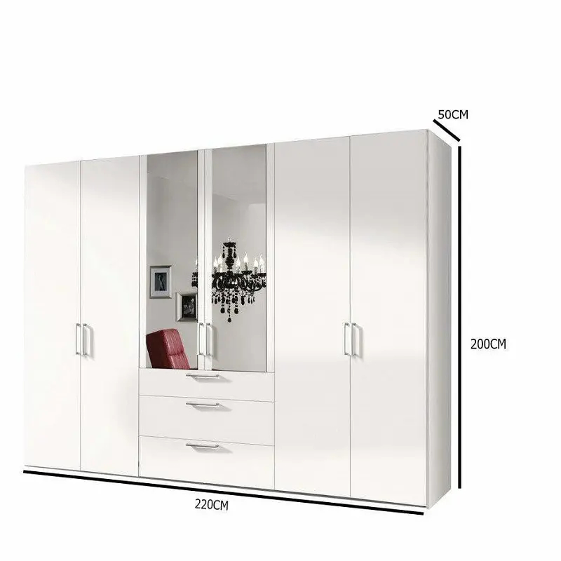 تأتي هذه الخزانة بمقاس إجمالي تقريبي (العرض 220 × العمق 50 × الارتفاع 200 سم)، مما يجعلها مناسبة لغرف النوم الرئيسية أو غرف الشباب أو حتى غرف الضيوف، دون أن تستهلك مساحة كبيرة أو تفسد تنسيق الغرفة.