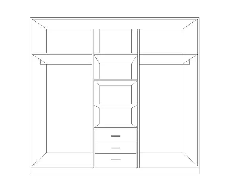 تتميز الخزانة بتقسيمات عملية تتيح لك ترتيب مختلف أنواع الملابس، من الملابس المعلقة إلى القطع المطوية. التصميم الداخلي يساعد على الاستفادة من المساحة المتوفرة بشكل مثالي، ويمنحك إمكانية الوصول السريع إلى ما تحتاجه دون فوضى.