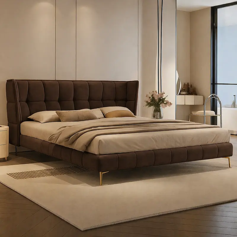 سرير جلدي إيطالي لغرفة نومك مع 2 كومود اضيف لمسة فخمة على غرفة نومك باقتناء هذا السرير الجلدي الإيطالي الفاخر من متجر أركان القصر. يتميز السرير بتصميمه العصري والمريح، بالإضافة إلى خاماته عالية الجودة التي تضمن لك سنوات من الاستخدام المريح.