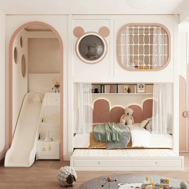 هذا النوع من الأسرة مناسب جدًا عند تجهيز غرف نوم الاولاد أو المساحات المشتركة بين الأطفال، لأنه يحقق توازنًا واضحًا بين الوظيفة والشكل العام. كما أن تصميمه العملي يجعله سهل الدمج مع مفروشات وأثاث الأطفال المختلف، لذلك يمكن اعتماده ضمن خيارات متعددة عند تنسيق الغرفة.