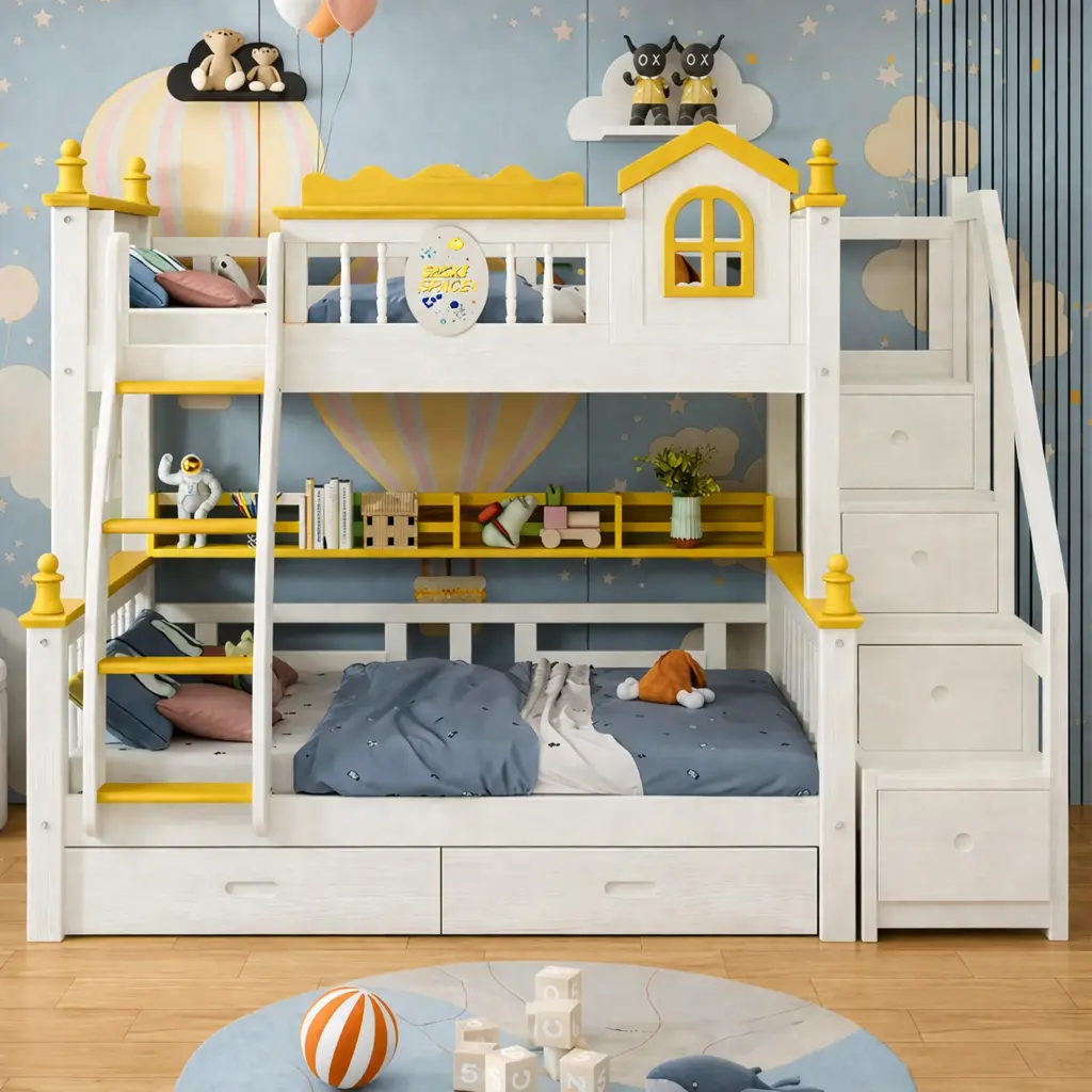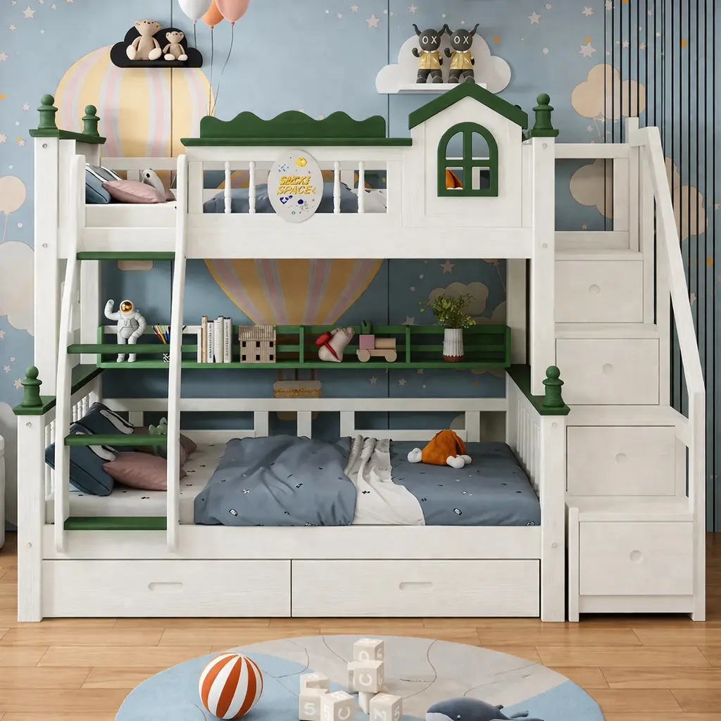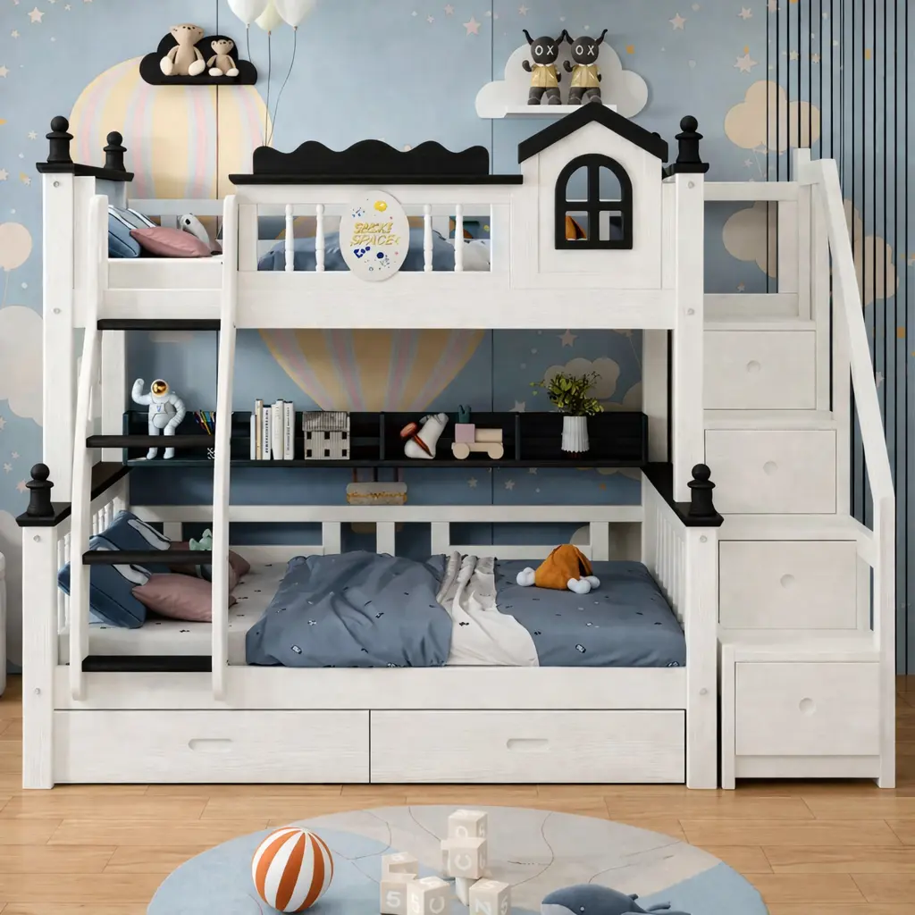 يتميز سرير مودرن بتصميمه البسيط والأنيق الذي يتناسب مع مختلف الأذواق والديكورات. كما أنه يوفر راحة فائقة بفضل سريره العلوي والسفلي المريحين. مصنوع سرير من خشب هندسي وخشب زان روماني عالي الجودة، مما يمنحه متانة عالية وقدرة على تحمل الاستخدام المكثف لسنوات طويلة.