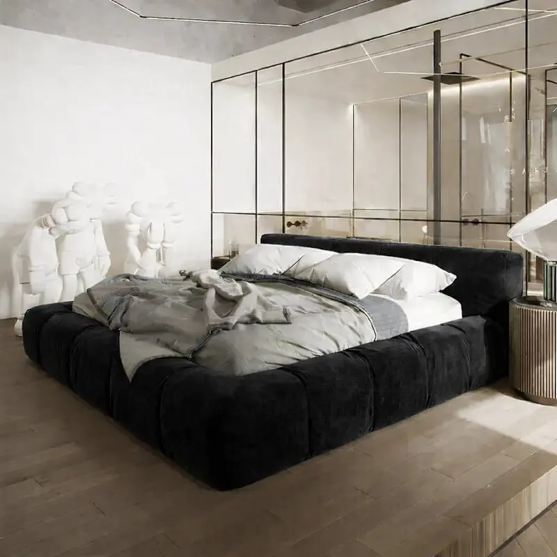 تشمل هيكل مصنع من خشب هندسي وخشب زان روماني عالي الجودة، مما يضمن المتانة والصلابة. التصميم المودرن يعكس الذوق العصري ويضفي على غرفة النوم جاذبية وأناقة. طبقة القماش المخملي الناعم المريح المبطن بالإسفنج عالي الكثافة توفر تجربة نوم فاخرة ومريحة.