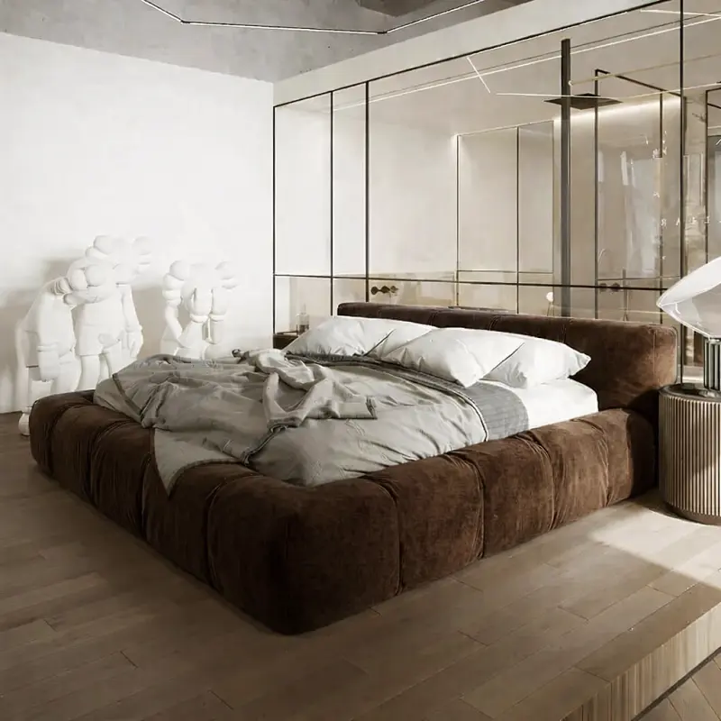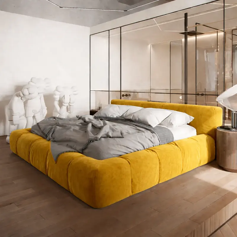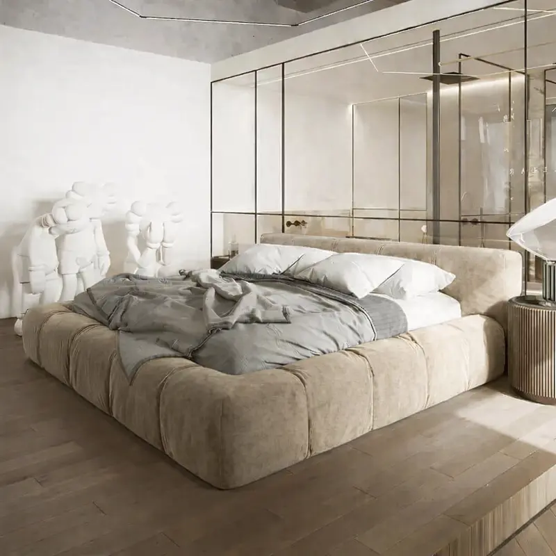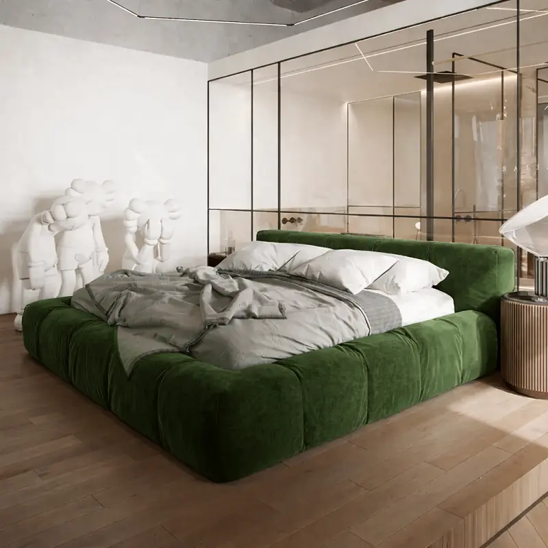 اقتني سرير غرفة نوم أرضي مغطي بالقماش المريح من متجر أركان القصر المميز لإضفاء لمسة للبيت. يعتبر السرير الأرضي خيارًا عمليًا وأنيقًا لأولئك الذين يفضلون تصميمات بسيطة وقريبة من الأرض. يمكن تنظيفه بسهولة عند الحاجة، مما يجعله مناسبًا للعائلات والأفراد الذين يبحثون عن الراحة والسهولة في الصيانة.