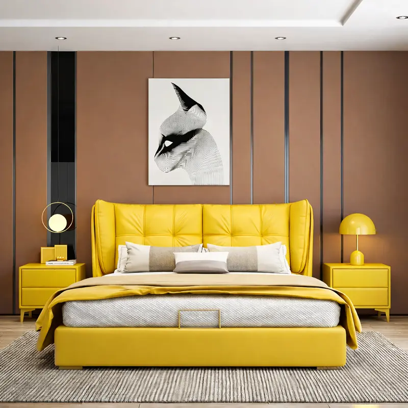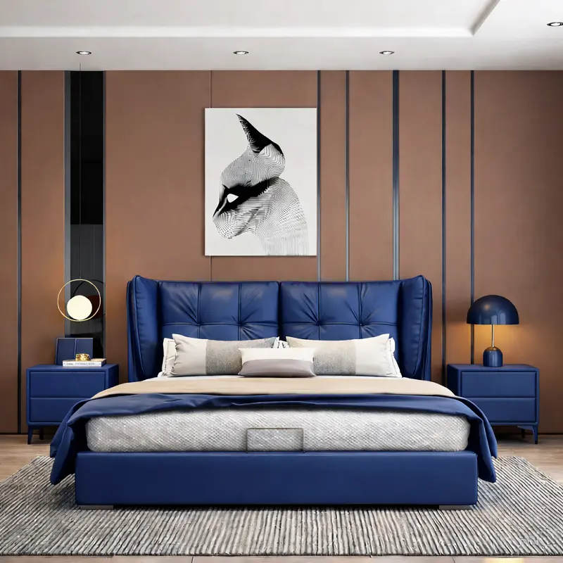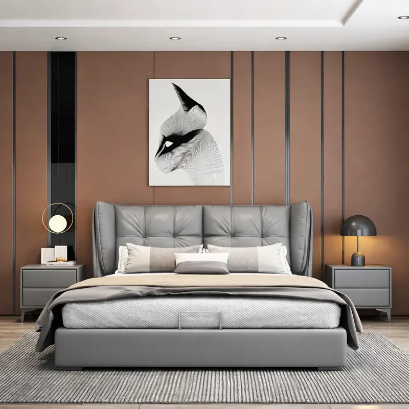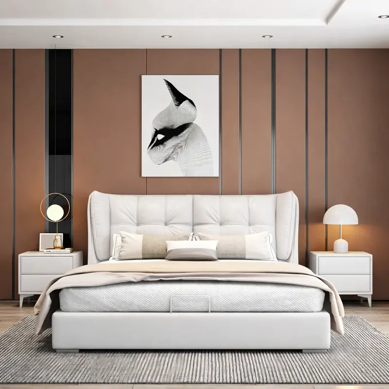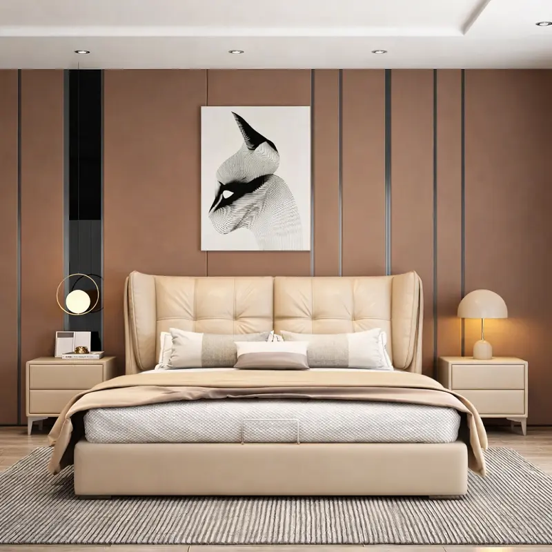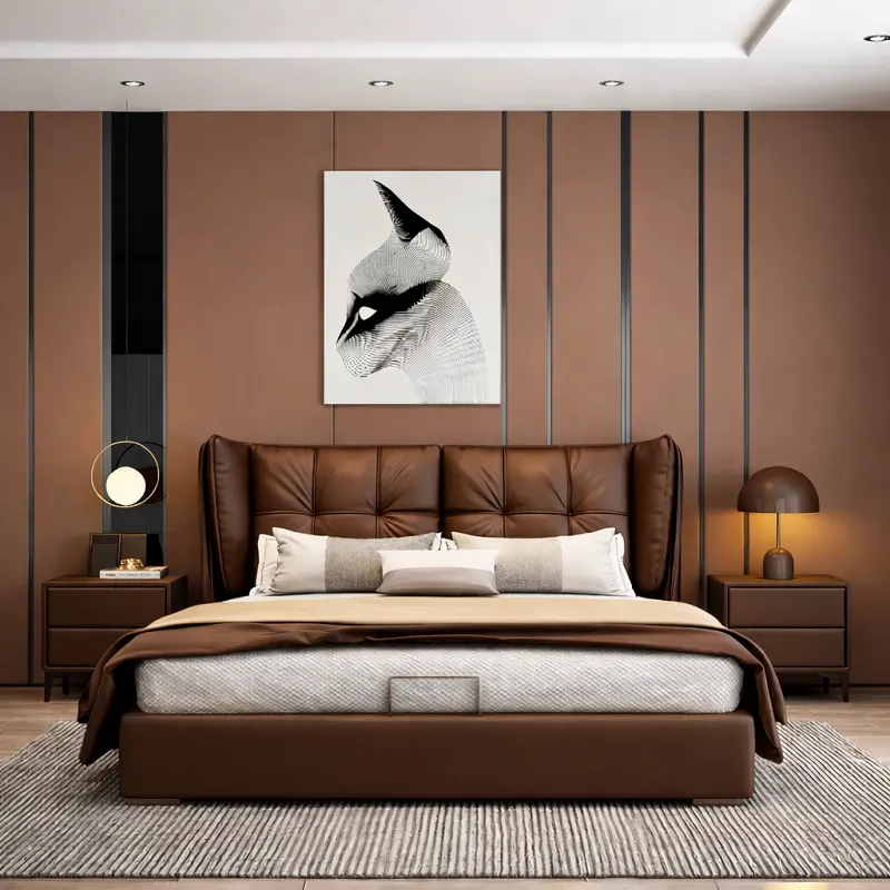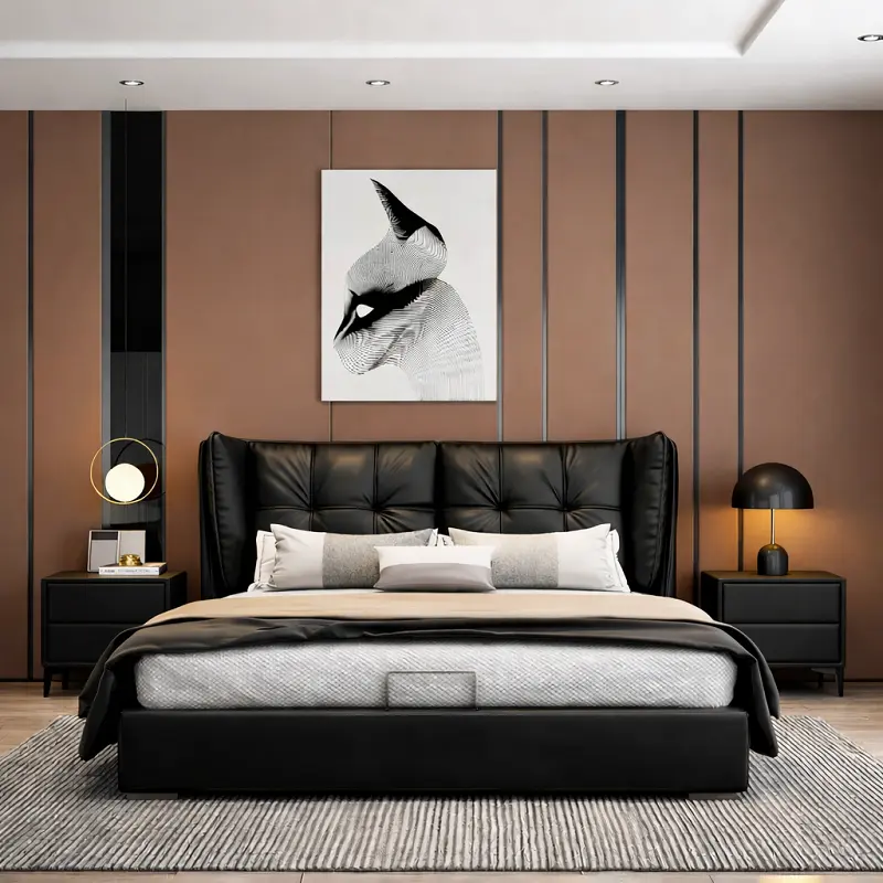 الغطاء الخارجي: جلد عالي الجودة يمنح السرير مظهرًا راقيًا ولمسة ناعمة.