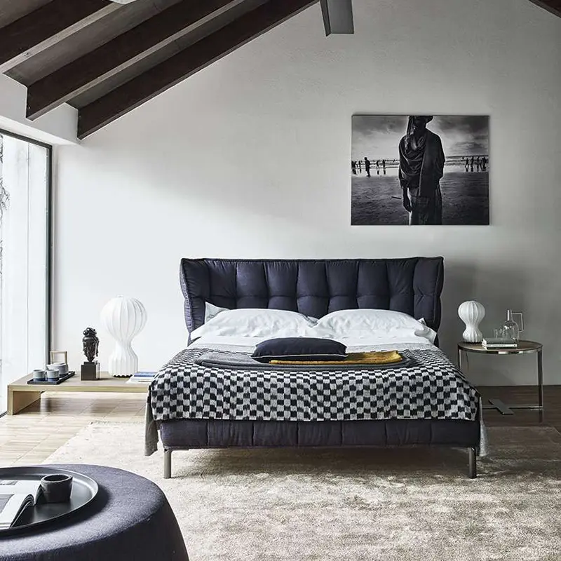 تم تصميم هذا السرير ليجمع بين الجاذبية البصرية والعملية، حيث يتميز بخطوط تصميم حديثة تخلق جوًا هادئًا ومريحًا في غرفة النوم. بفضل المواد المستخدمة بعناية، فهو يجسد الجودة في كل تفصيلة، بدءًا من الهيكل وحتى تغليفه الخارجي.