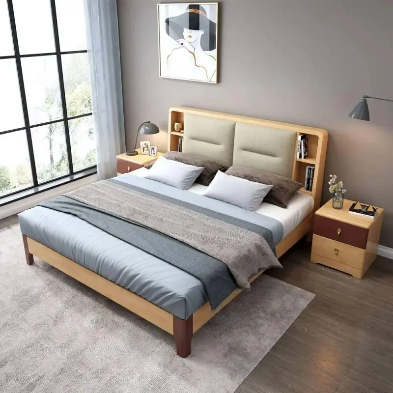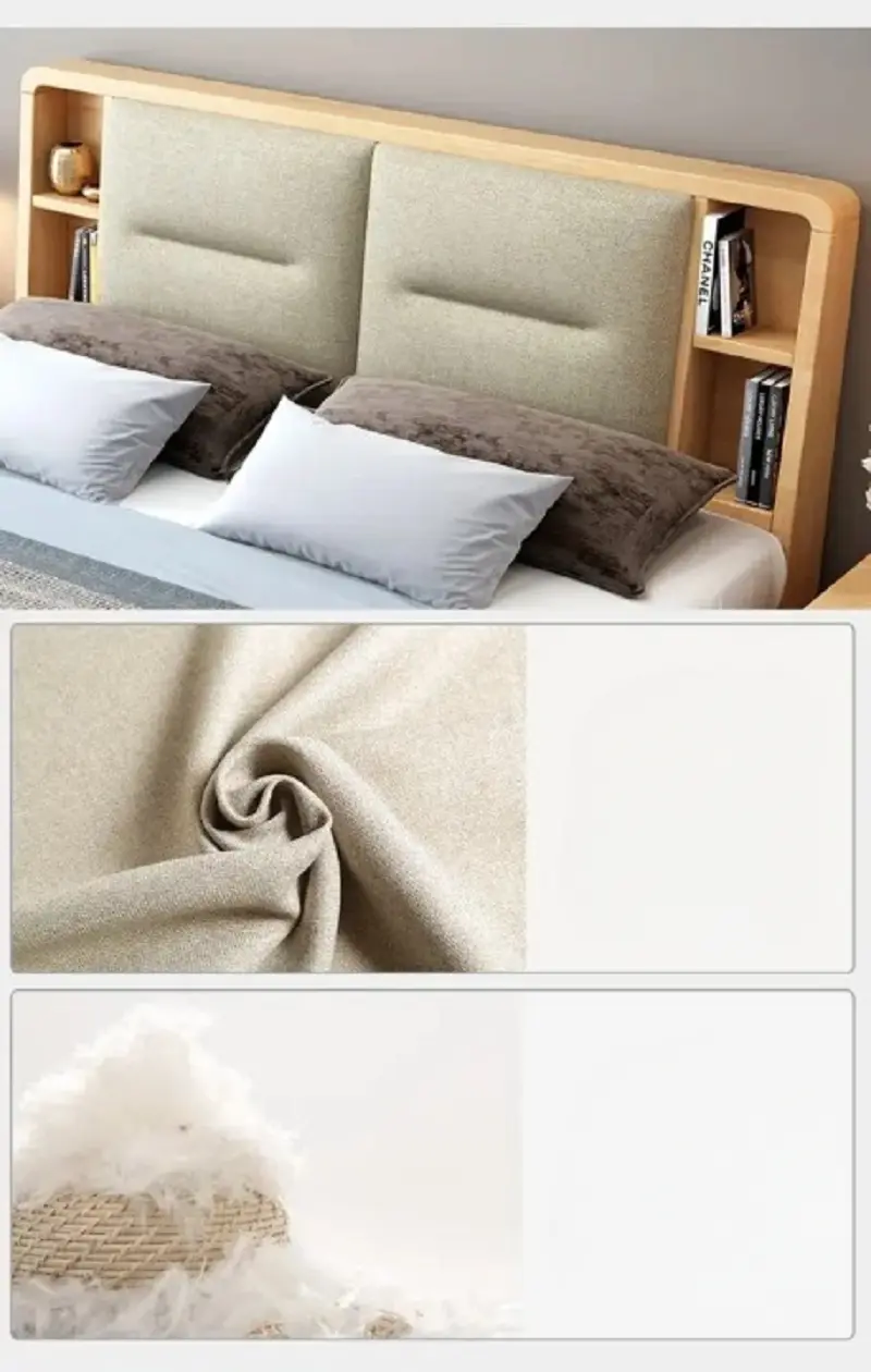 مصنوع من خشب هندسي وخشب زان روماني عالي الجودة، مما يضمن قوة تحمل وثباتًا قويًا للمنتج. يتميز بقاعدة وأرجل سميكة لتحقيق استقرار قوي للسرير. يحتوي على مسند ظهر من القماش المخملي الناعم والمريح، مبطن بطبقة عالية الكثافة من الإسفنج المرن لتوفير استرخاء ونوم مريح. يحتوي على أدراج تخزينية سفلية بسعة تخزينية واسعة، بالإضافة إلى أرفف جانبية قابلة للتعديل لتلبية احتياجات التخزين الفردية.