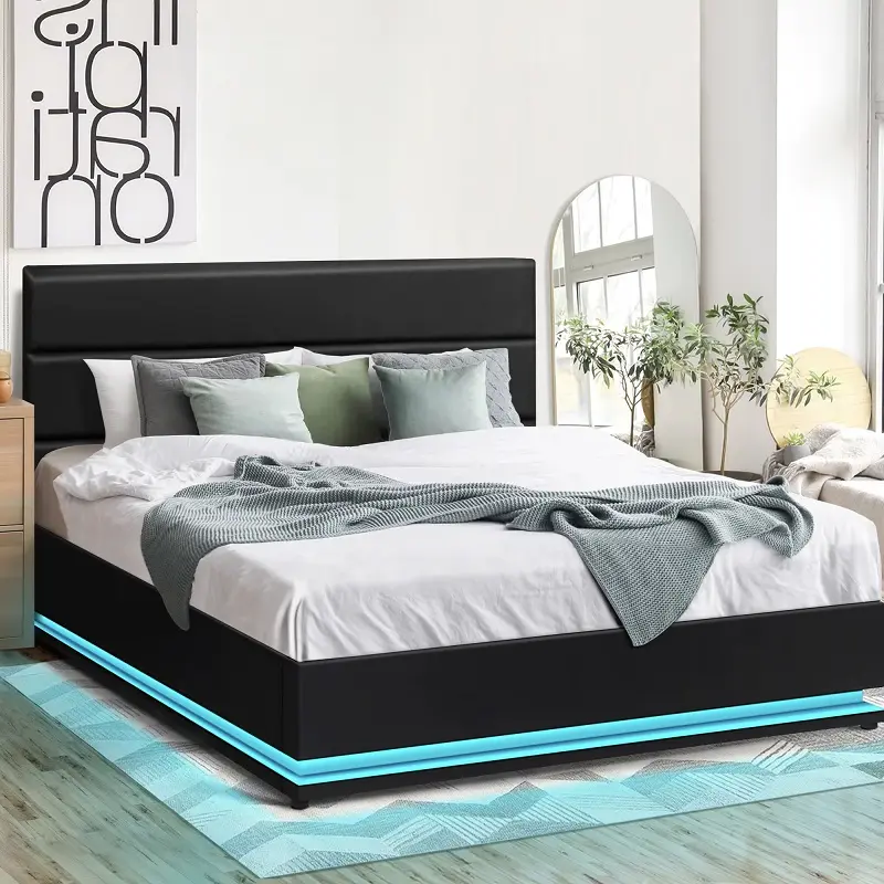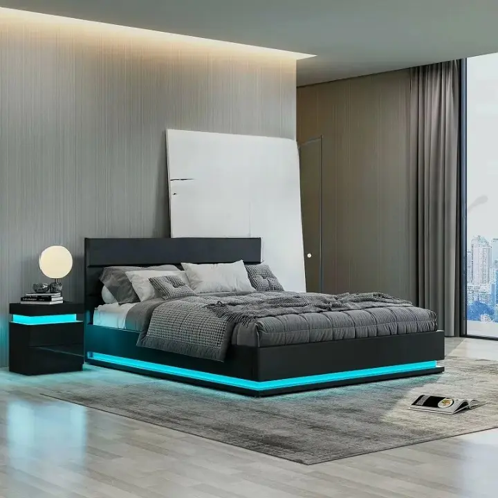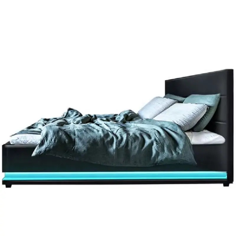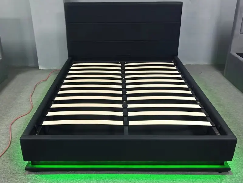 السرير مزود بإضاءة داخلية مدمجة، تضيف أجواء دافئة وهادئة في المساء، وتوفر حلاً عمليًا للرؤية الليلية بدون الحاجة إلى تشغيل الإنارة الرئيسية. هذه الميزة تعزز من الإحساس بالراحة والاسترخاء قبل النوم.