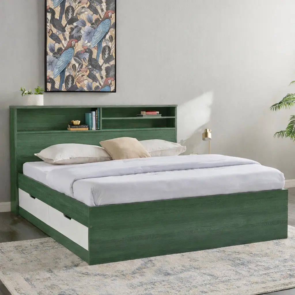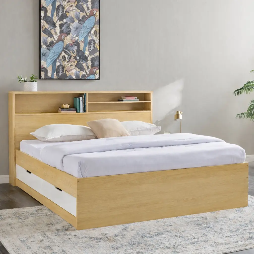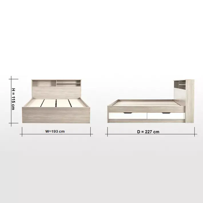يتميز سرير جامي بتصميمه المصنوع من الخشب الهندسي عالي الجودة، مما يجعله قويًا ومتينًا ومقاومًا للاهتراء. يتميز السرير بلوح رأسي أنيق يضفي لمسة من الفخامة على غرفة النوم، بالإضافة إلى أدراج سحب سهلة الاستخدام لتوفير مساحة تخزين إضافية لملابسك وأغراضك الشخصية.