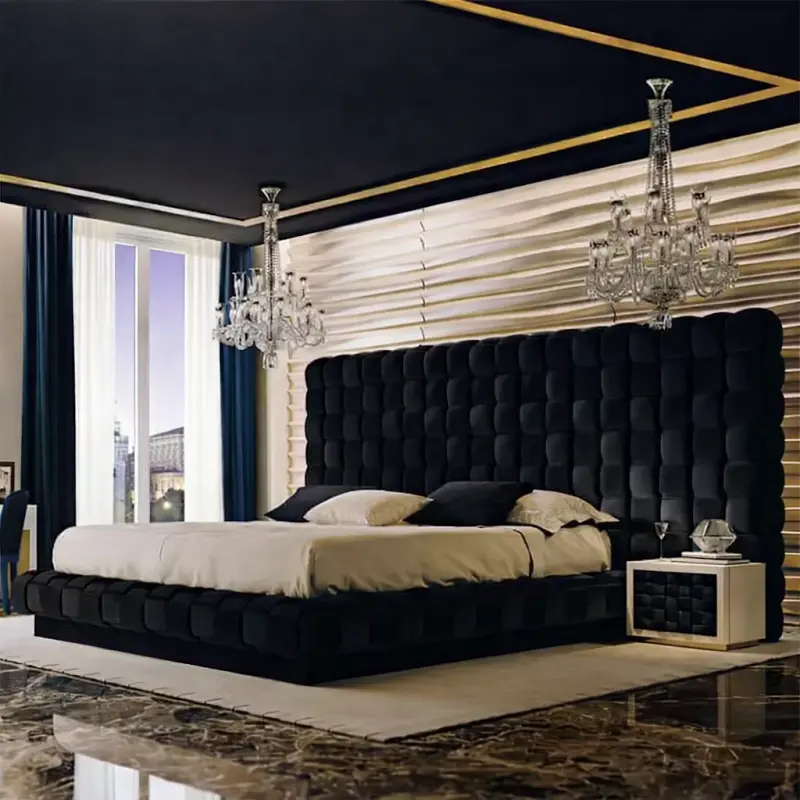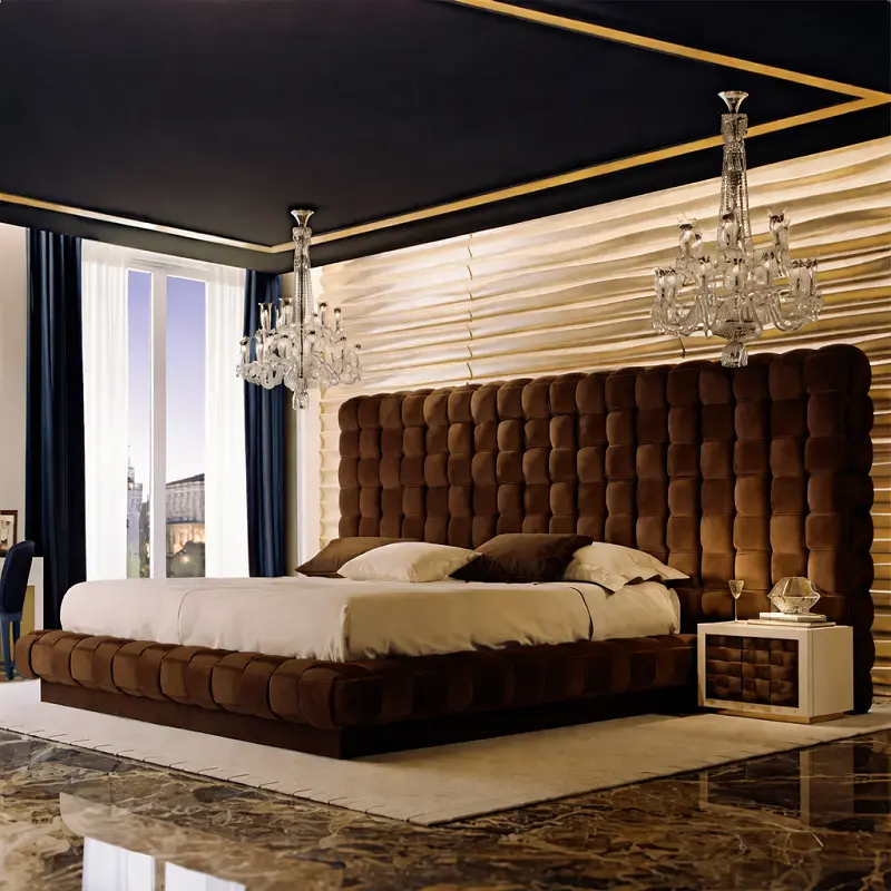 صُنع هيكل السرير من خشب هندسي عالي الجودة وخشب زان روماني، مما يوفر للسرير الاستدامة والقوة. يتمتع الظهر بتبطين فاخر يستخدم اسفنجًا عالي الجودة ويُغطى بقماش مخملي ناعم، مما يخلق تجربة نوم فاخرة ومريحة.