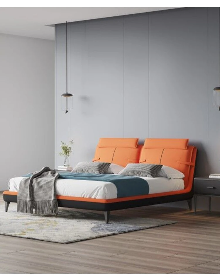 سرير نوم جلد بتصميم عصرى مميز يتميز بتصميم إيطالي جذاب ومظهر بسيط وأنيق يضفي جمالية فريدة على أي غرفة نوم.