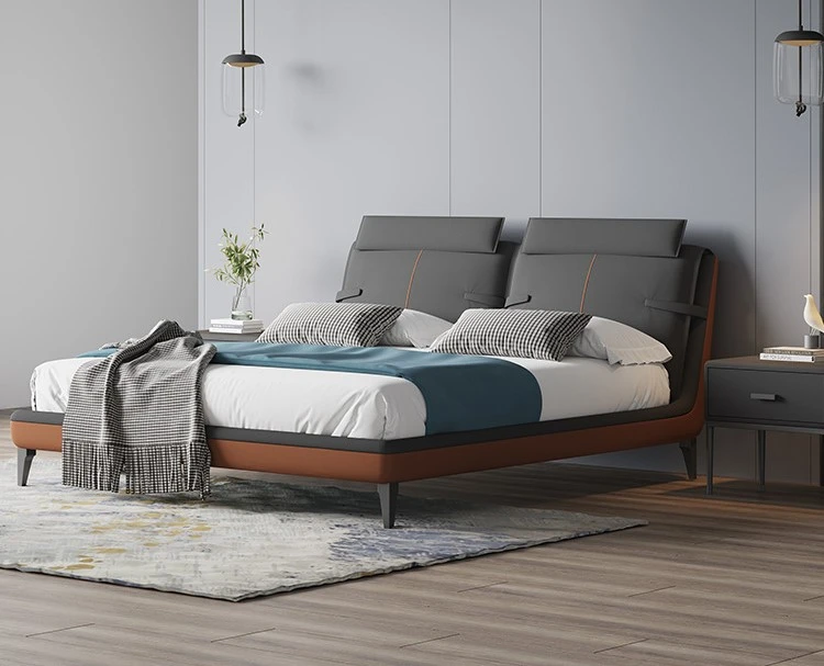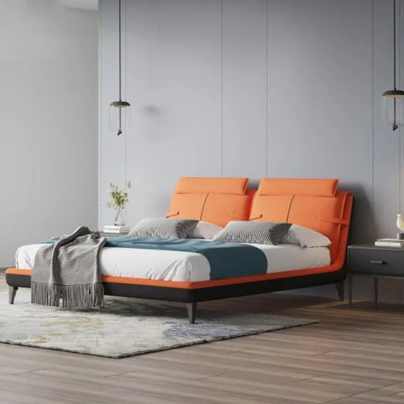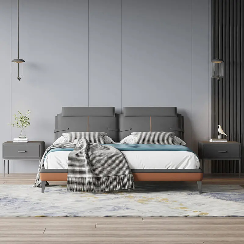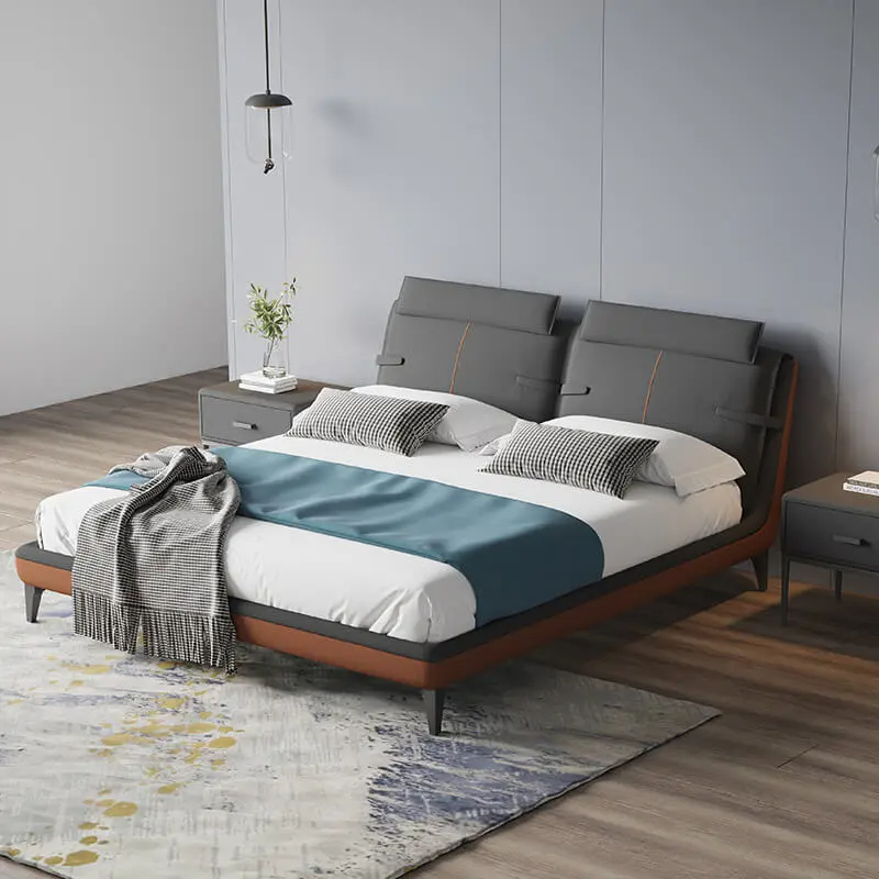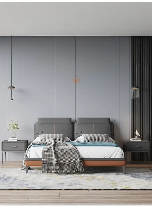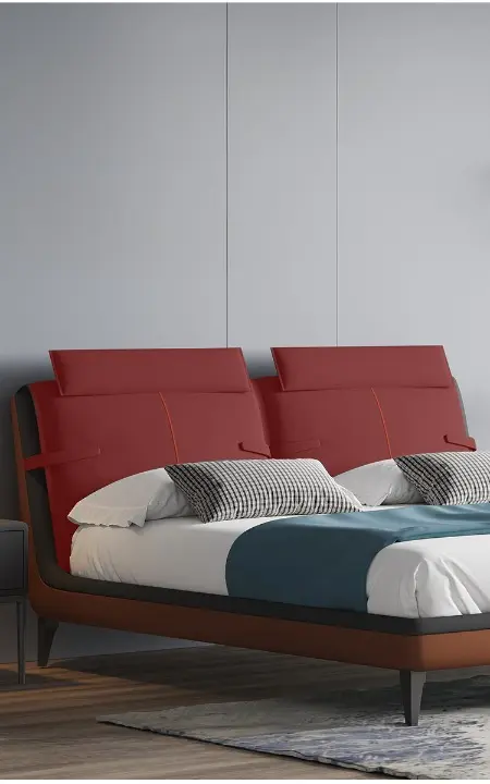 سرير نوم جلد بتصميم عصرى مميز يجمع بين الأناقة والراحة لتجربة نوم استثنائية.