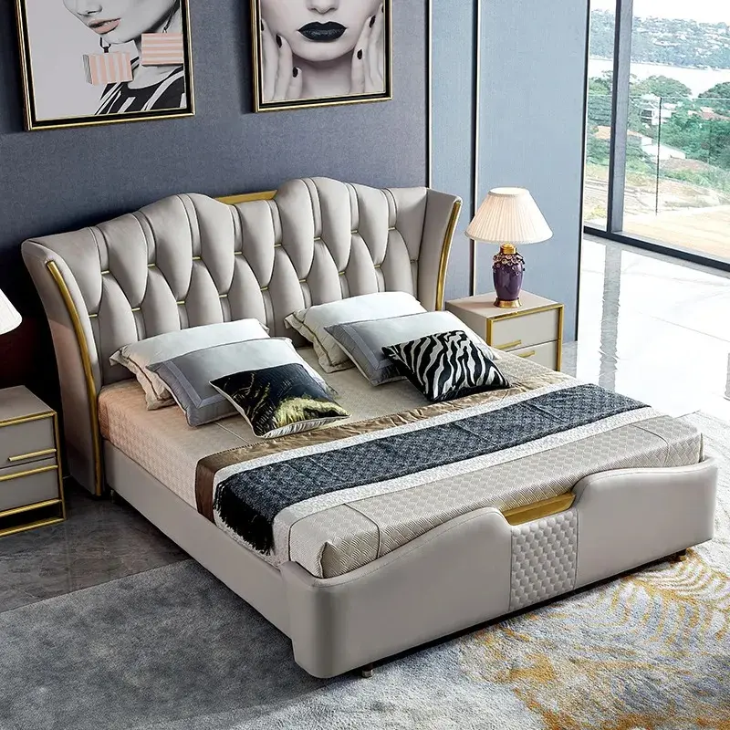 استمتع بأجواء الرفاهية والفخامة مع سرير جلدي ذو التصميم الأنيق والمميز، مصمم خصيصًا ليضفي لمسة من الأناقة إلى غرفتك.