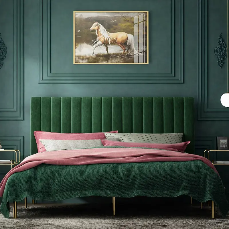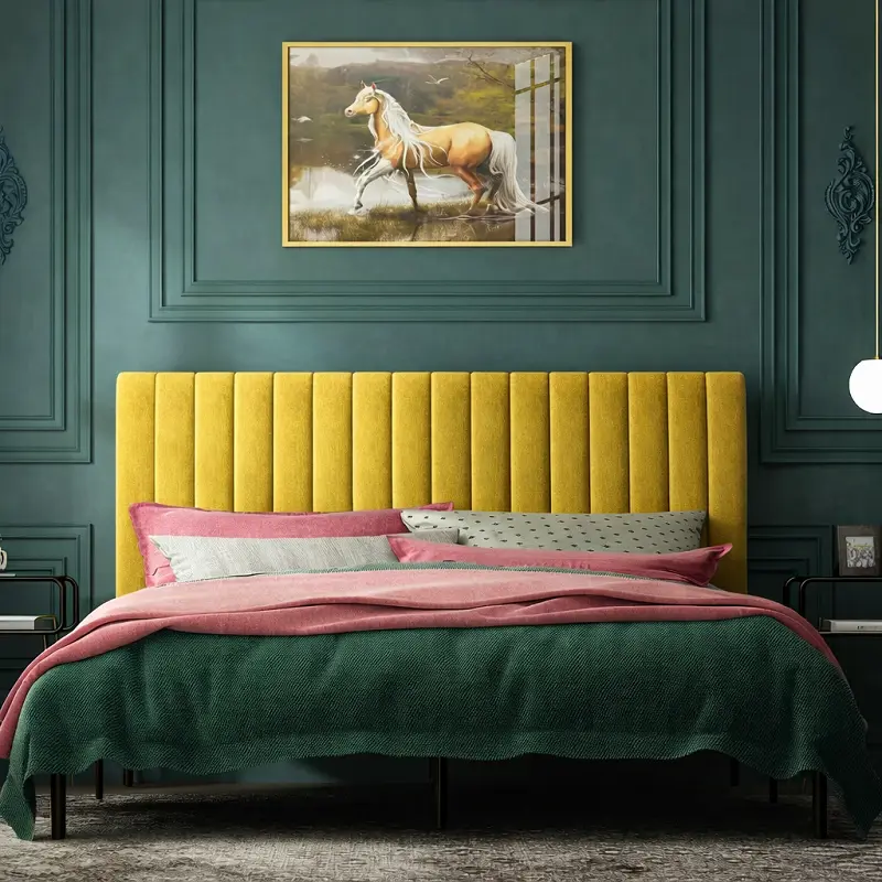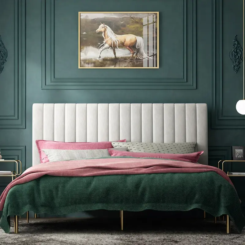 يتميز السرير بتنجيد فاخر من الإسفنج عالي الكثافة، ما يمنح ملمسًا ناعمًا وراحة فائقة عند الاستلقاء أو الجلوس. تمت تغطية التنجيد بقماش من أجود الأنواع، مما يضمن مقاومة ممتازة للاستخدام المستمر، مع الحفاظ على الشكل العام وأناقة التصميم.
