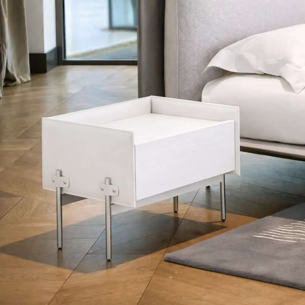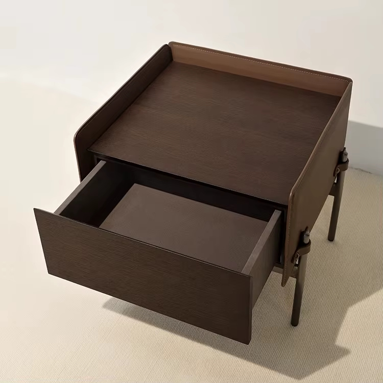 تأتي الطاولة مع درج عملي مصنوع من الخشب، يتميز بسهولة الفتح والإغلاق، مما يوفر مساحة إضافية لتخزين الأغراض الصغيرة مثل أجهزة التحكم أو الكتب أو الإكسسوارات اليومية. هذا يجعلها مناسبة لمن يبحث عن حل بسيط لتنظيم المساحة دون الحاجة إلى قطع كبيرة.