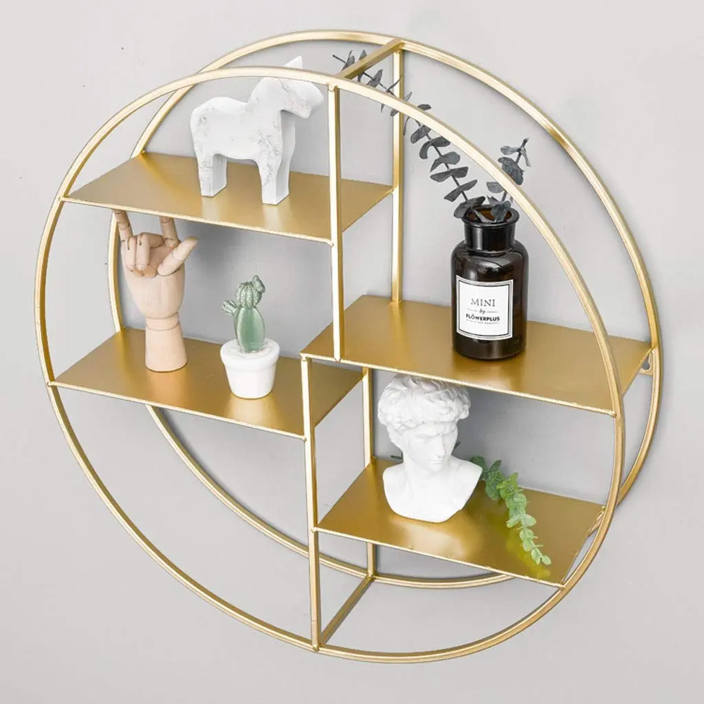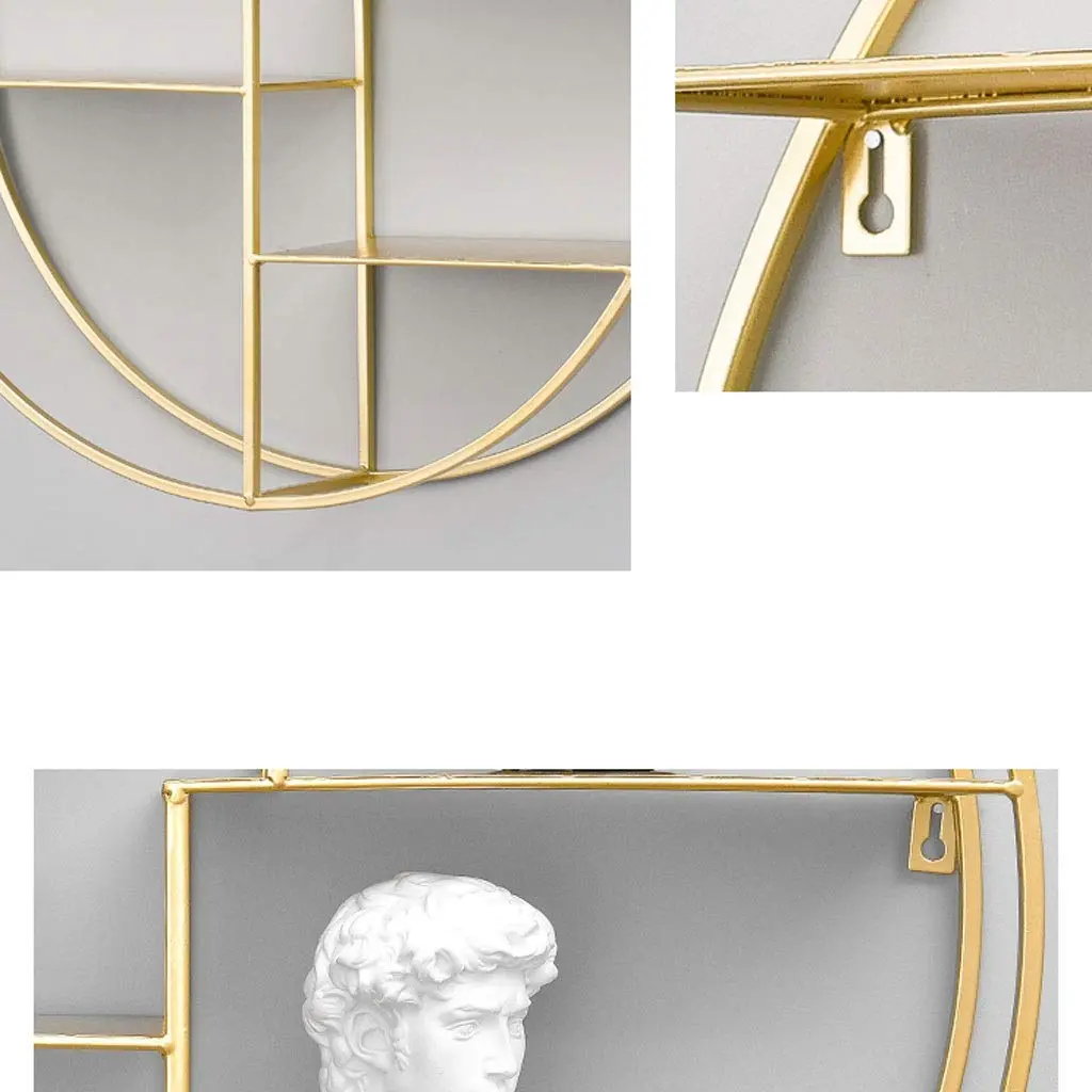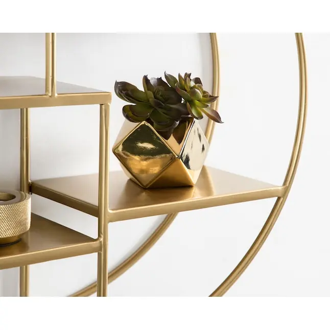 يأتي الرف بلون ذهبي يمنحه حضورًا أنيقًا ينسجم مع عناصر ديكور كثيرة داخل المنزل. هذا اللون يساعد على إبراز القطع المعروضة عليه بطريقة جميلة، كما يضيف إحساسًا بالدفء والرقي، خصوصًا عند تنسيقه مع جدران فاتحة أو تفاصيل ديكور هادئة. ولهذا يعد خيارًا مناسبًا ضمن تنسيق رف ديكور يركز على الأناقة والبساطة في الوقت نفسه.