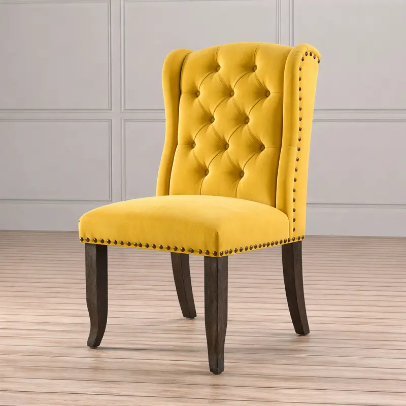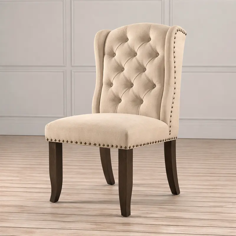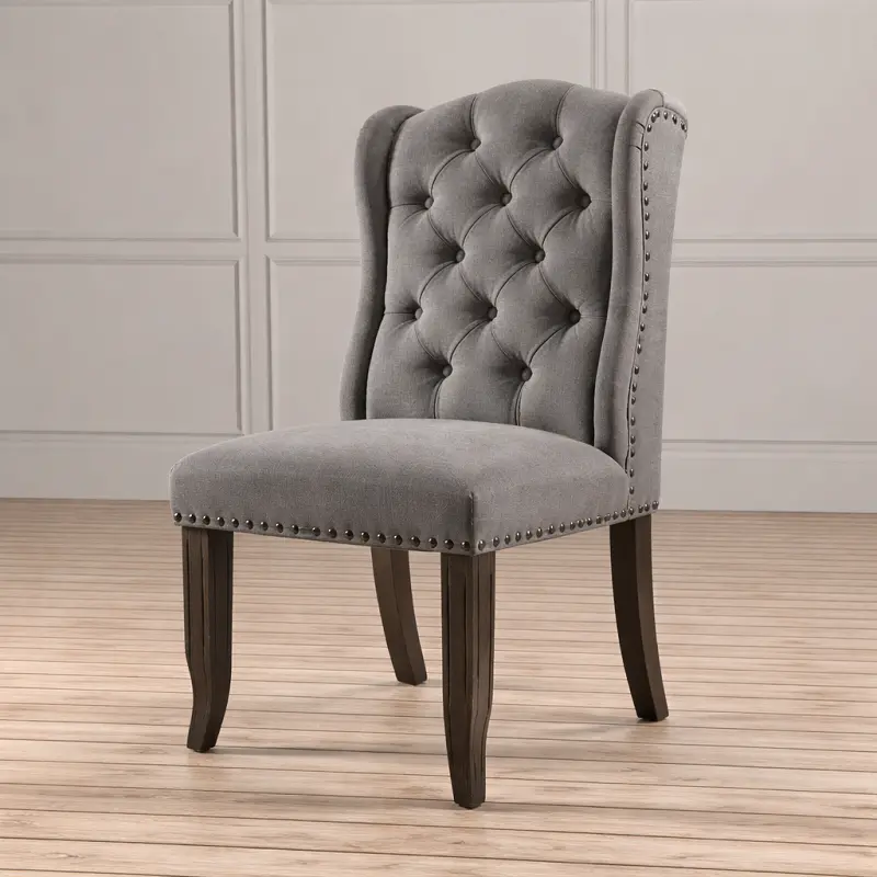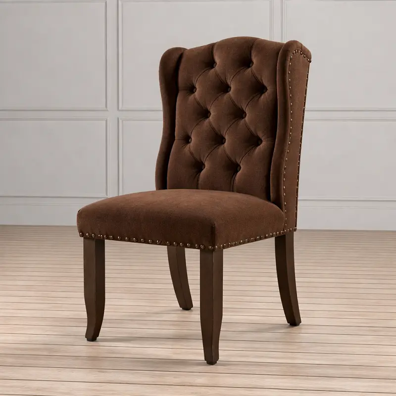 يتميز هذا الكرسي بتصميم كلاسيكي راقٍ يجمع بين الأناقة والمتانة، ما يجعله خيارًا مثاليًا لغرف الطعام ذات الطابع الفاخر أو العصري. بفضل أبعاده المدروسة بعناية، يوفّر راحة ممتازة ويُناسب المساحات المتوسطة والصغيرة على حدٍ سواء.