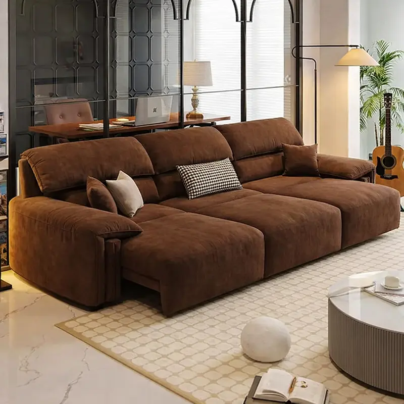 سطح الجلد القطيفي سهل التنظيف، مما يجعله خيارًا عمليًا للأسر التي لديها أطفال.