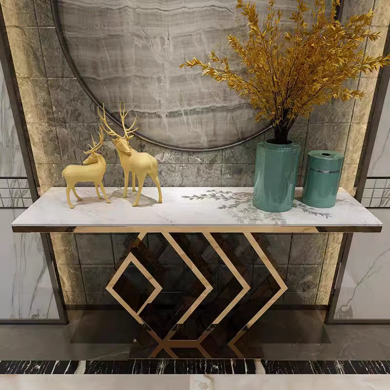 إذا كنت تبحث عن قطعة فريدة من نوعها لتضيف لمسة من الأناقة والفخامة إلى مدخل منزلك، فإن كنسول بسطح رخام بتصميمه الراقي والعالي الجودة هو الخيار المثالي لك. يتميز هذا الكنسول بتصميمه العصري الأنيق الذي يضفي لمسة من الأناقة إلى أي مساحة يوضع فيها.