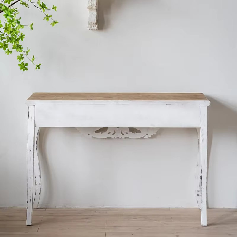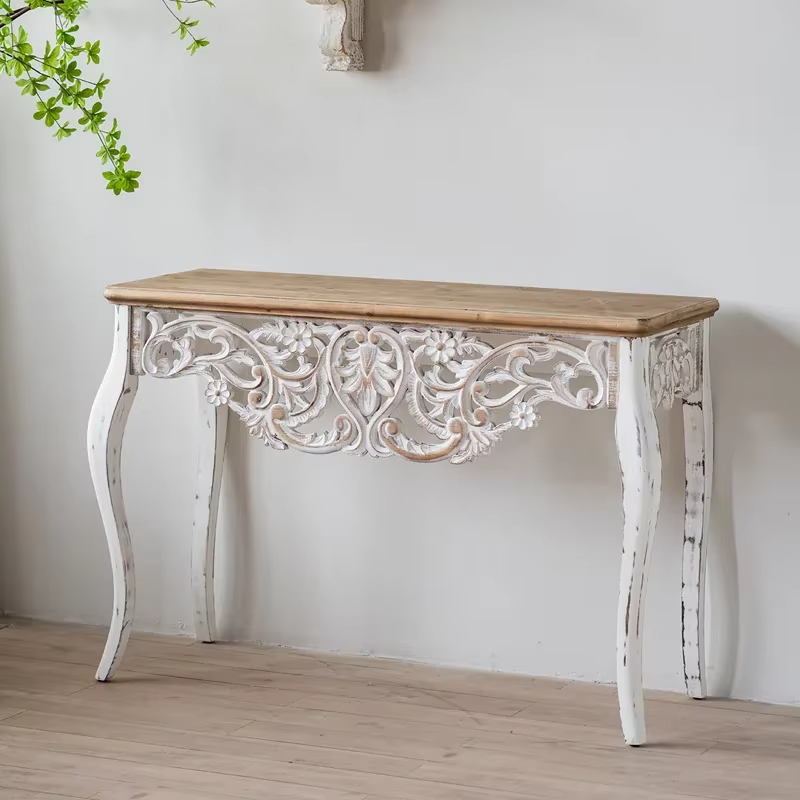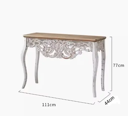 تتميز السطح الخشبي للكنسول باللون الأبيض الناصع، مما يضفي عليها لمسة من النعومة والأناقة.